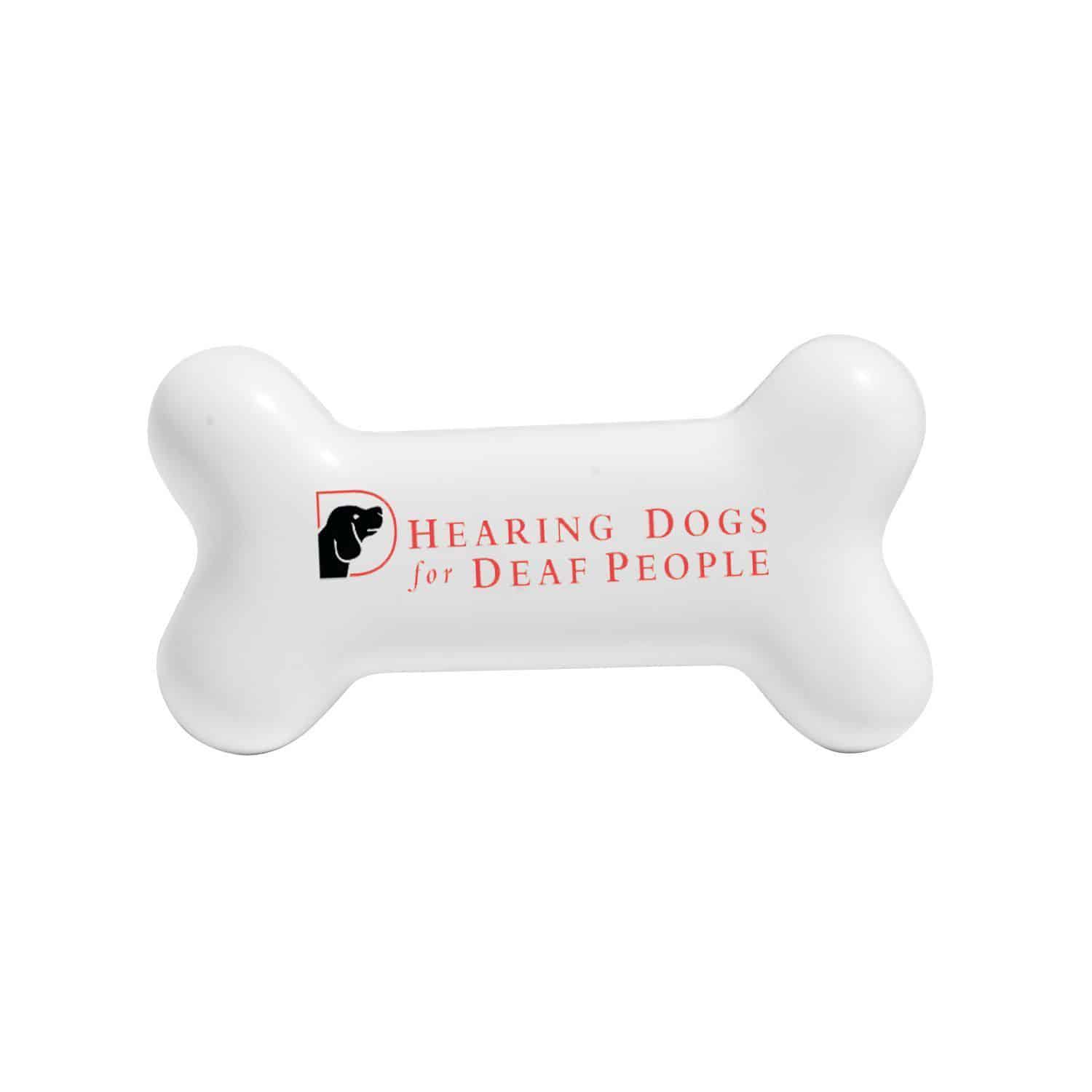 Bone shape stress reliever. This product is not a toy and is not safe for use by children under 3 or pets. Please note: because each polyurethane stress ball is manufactured by hand, no two balls are exactly alike. Placement of second side imprint may not be exactly centered as it is individually hand printed. Factory is not responsible if imprint is not completely legible. Imprint will break and appear uneven due to the textured surface. 5.0″ W x 2.75″ H x 1.0″ D